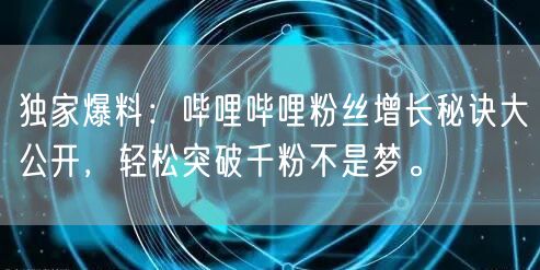 独家爆料:哔哩哔哩粉丝增长秘诀大公开,轻松突破千粉不是梦。
