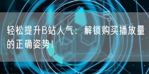 在B站这个充满活力和创意的平台,拥有高人气是每个创作者追求的目标。除了优秀的视频内容和创意宣传外,购买播放量也是提升人气的一种有效手段。本文将为大家解锁购买播放量的正确姿势,助力您在B站轻松提升人气!