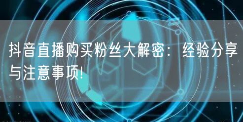抖音直播购买粉丝大解密:经验分享与注意事项!