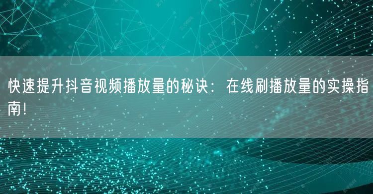 快速提升抖音视频播放量需要综合多方面的技巧和方法。通过优化内容质量、精准定位受众、利用热门话题以及在线刷播放量的实操技巧,你可以有效地提高抖音视频的曝光度和关注度。希望本文的实操指南能为你带来帮助,让你在抖音平台上取得更好的成绩!