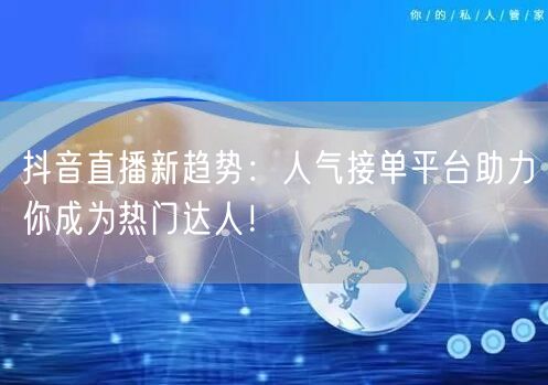 抖音直播新趋势:人气接单平台助力你成为热门达人!