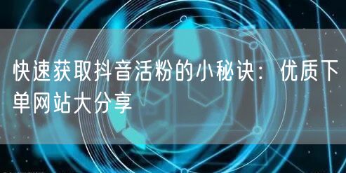 快速获取抖音活粉的小秘诀:优质下单网站大分享