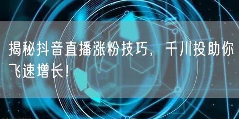 揭秘抖音直播涨粉技巧,千川投助你飞速增长!