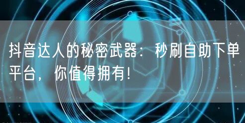 抖音达人的秘密武器:秒刷自助下单平台,你值得拥有!