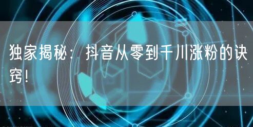 独家揭秘:抖音从零到千川涨粉的诀窍!
