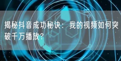 揭秘抖音成功秘诀:我的视频如何突破千万播放?