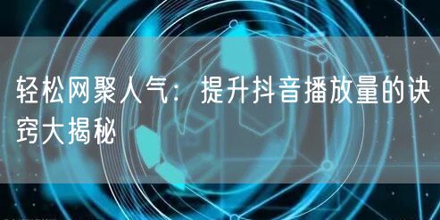 通过以上几个方面的努力和实践,你就能轻松网聚人气,提升抖音播放量。记住关键在于持续努力、不断优化和创新尝试。掌握这些诀窍后你会发现自己在抖音上的影响力逐渐扩大。祝你在抖音上取得更大的成功!