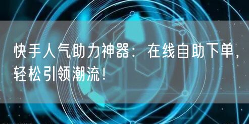 快手人气助力神器:在线自助下单,轻松引领潮流!