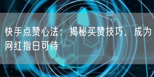 通过本文的买赞技巧,结合你的努力与才华,相信你在快手的网红之路会越来越宽广。掌握这些方法,让我们一起努力,成为快手红人吧!
