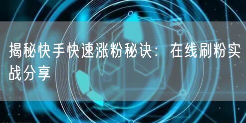 揭秘快手快速涨粉秘诀:在线刷粉实战分享