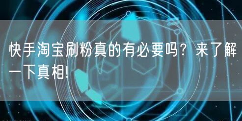 快手淘宝刷粉真的有必要吗?来了解一下真相!