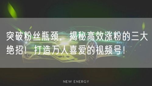 突破粉丝瓶颈,揭秘高效涨粉的三大绝招!打造万人喜爱的视频号!