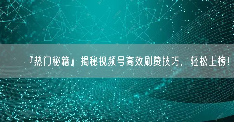 『热门秘籍』揭秘视频号高效刷赞技巧,轻松上榜!
