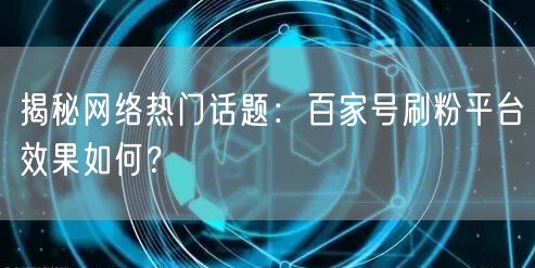 揭秘网络热门话题:百家号刷粉平台效果如何?