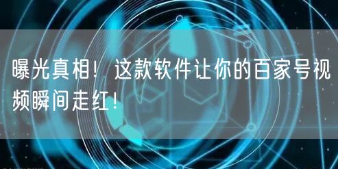 曝光真相!这款软件让你的百家号视频瞬间走红!