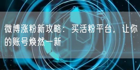 通过购买活粉平台,可以快速增加微博粉丝数量,提升账号影响力。但我们要理性看待这一方法,结合优质的内容和互动,才能真正实现微博账号的长足发展。希望本文的涨粉新攻略能对你有所帮助,让你的微博账号焕然一新。