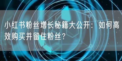 小红书粉丝增长秘籍大公开:如何高效购买并留住粉丝?