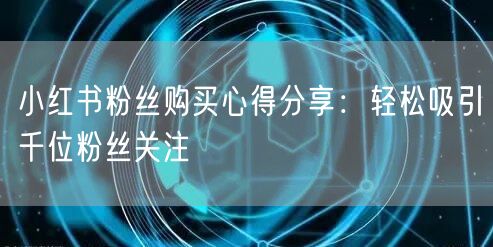 小红书粉丝购买心得分享:轻松吸引千位粉丝关注
